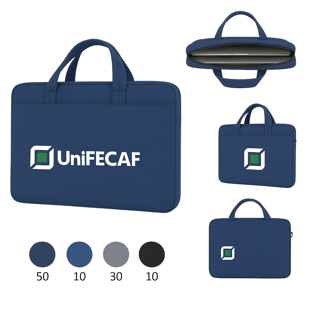 Elegância e Minimalismo: Com um design slim e acabamento em tecido de alta qualidade, esta maleta elimina o volume desnecessário, garantindo um transporte discreto e profissional. É o brinde perfeito para executivos e estudantes que prezam pela aparência impecável.